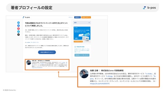 また、著者プロフィール内には会社ホームページやサービスサイト、SNSアカウントなどのリンク設置も可能となっています。
