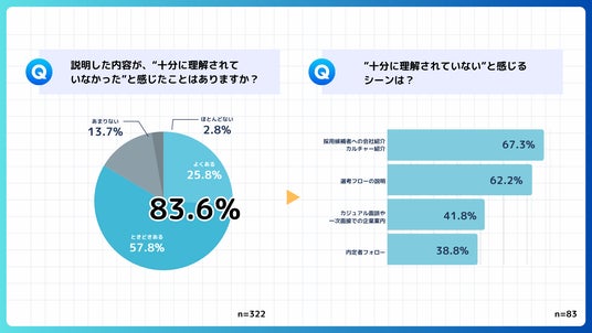 Q 人事業務のうち、採用業務に関わる業務であなたが説明した内容が、“十分に理解されていなかった”と感じたことはありますか?」(n=322)と質問したところ、