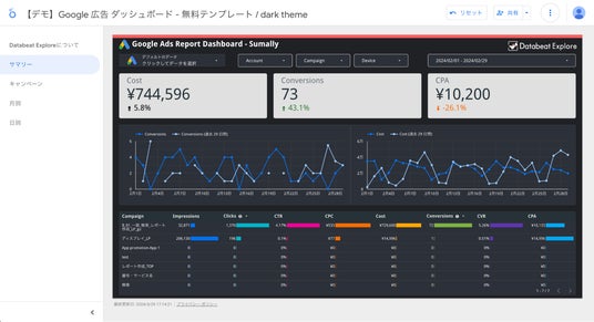 「Databeat」が無料配布しているLooker Studioテンプレートを利用すれば、Google広告のデータを簡単に可視化できます。