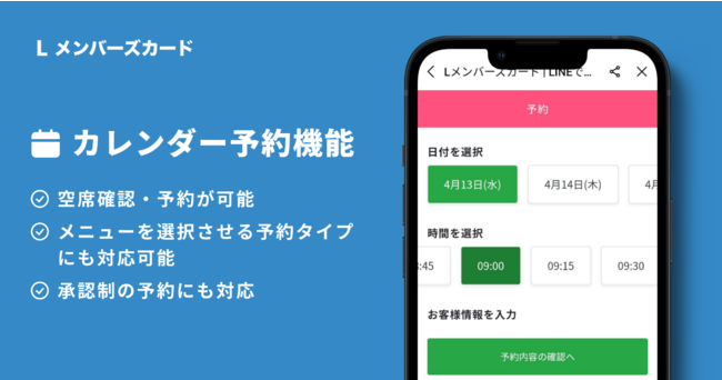 Lメンバーズカードの拡張機能として利用いただける「カレンダー予約機能」では、