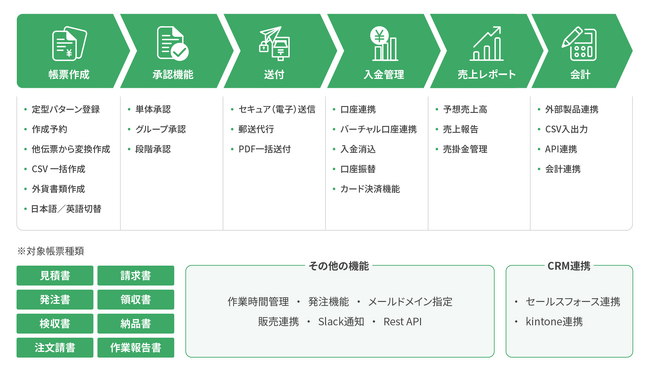 提供開始後も作成できる書類タイプの拡大や機能追加などを随時行い、電子帳簿保存法やインボイス制度への対応などで急速に求められるバックオフィスの電子化の促進のために市場の需要は拡大しています。