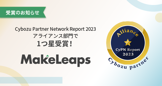 リコーグループのメイクリープス株式会社(本社:東京都目黒区、代表取締役社長:児玉哲、以下メイクリープス)が提供するクラウド型請求管理サービス「MakeLeaps(メイクリープス)」は、サイボウズ株式会社(本社:東京都中央区、代表取締役社長:青野 慶久、以下サイボウズ)のオフィシャルパートナー制度「Cybozu Partner Network Report 2023(略称:CyPN Report)」アライアンス部門にて受賞したことをお知らせいたします。