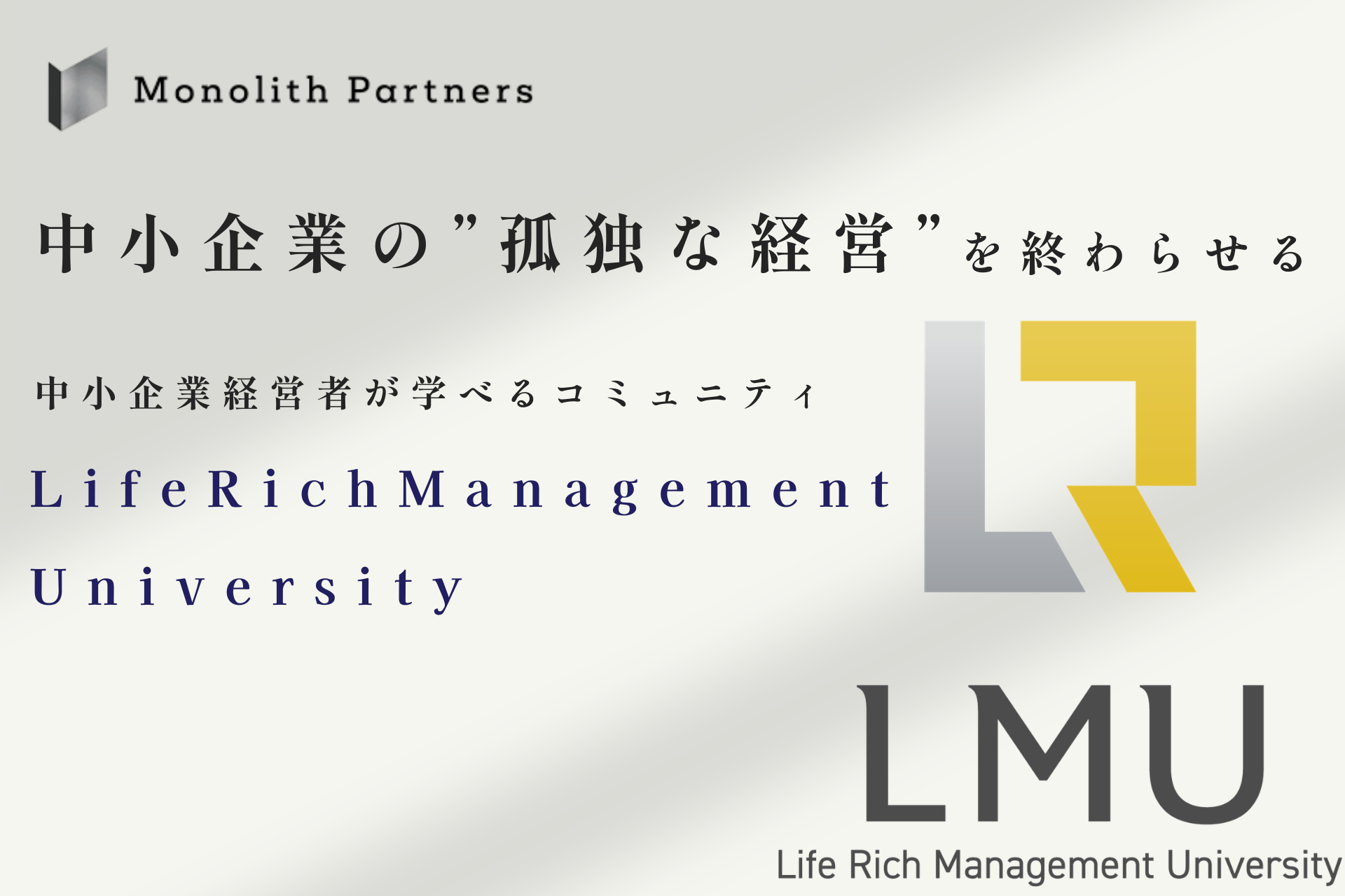 「経営者に、数字に縛られない真の自由を」をコンセプトに掲げ、オンライン経営改善・資金繰り支援サービスをはじめとした中小企業支援を行う株式会社リーベルタッド(本社:茨城県守谷市、代表:市ノ澤 翔)は、2026年2月20日に「Life Rich Management University」を正式に開始することをお知らせいたします。本サービスは、中小企業経営者の孤独を解消し、学びとつながりを売上に変える、新しい経営支援のプラットフォームです。