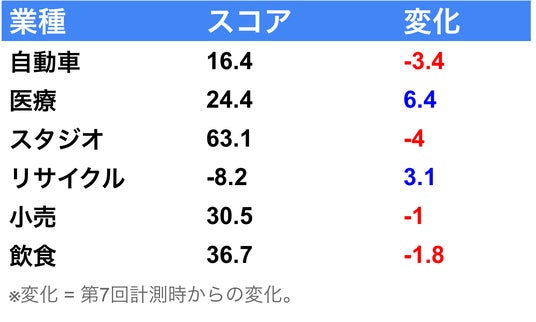 ■ 第7回からの変化の特徴今回、第7回からの変化が大きかったのが、医療業界でした。各店舗ごとに変動の理由はそれぞれに存在しているため具体的な言及は難しいですが、高評価・低評価が入る際には全体的に以下の傾向が見られました。
