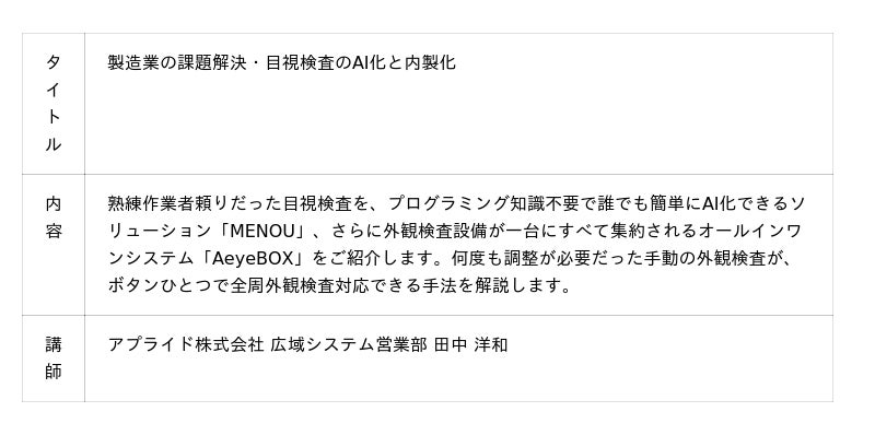 製造業の課題解決・目視検査のAI化と内製化(MENOU) 【株式会社アプライド】