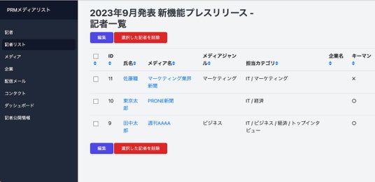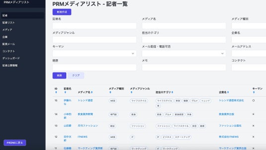 https://prone.jp/ )上に、PRMメディアリスト機能をはじめとしたPRM関連の機能が複数実装されています。