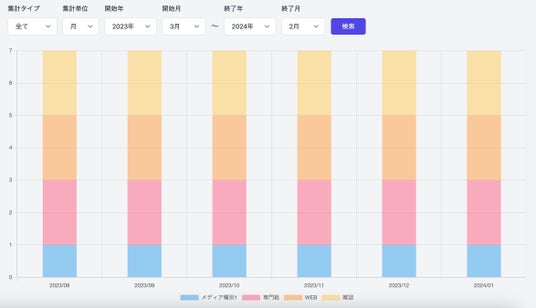 メール配信後の開封状況だけでなく、記者とのやりとりや問い合わせ/取材依頼、記事化の有無などをフォームから簡単に入力できます。入力された情報は自動的に記者情報に紐づくため、記者との関係性が見える化され、良好な関係を構築しやすくなります。5.効果計測のためのダッシュボード