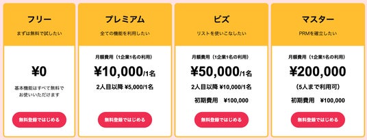 プランは無料のフリープランと、オンライン広報に必要な有料の各種プラン(月1万円~)があります。
