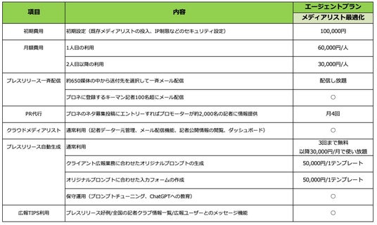 https://prone.jp/ )に新たにエージェントプランを新設し、4月1日より企業の広報・PR活動を支援するPR代理店やフリーランス広報向けに提供開始します。これにより、プロネを導入したPR代理店は自社で保有する記者データ「メディアリスト」の管理負荷が軽減するとともに、自社とメディアとの良好な関係を構築・促進することが可能となるため、顧客(クライアント)に提供している広報・PRサービス品質のさらなる向上、ひいては自社の売上増につなげることができます。