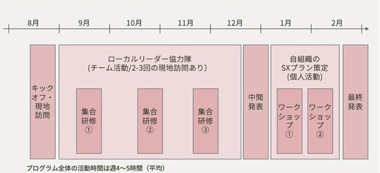 SXリーダーシップ実践プログラムは、ビジネスパーソンが日本の地域社会に向き合う経営者(通称:ローカルリーダー)の右腕として活動に取り組むなか、そこで得た経験と経営者視点をもとに自社のビジネスプランを策定する半年間の越境プログラムです。