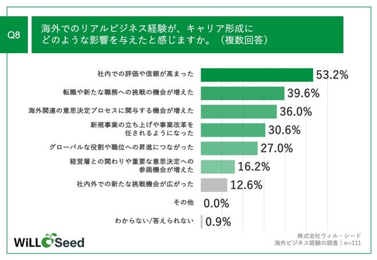 Q8.海外でのリアルビジネス経験が、キャリア形成にどのような影響を与えたと感じますか。(複数回答)