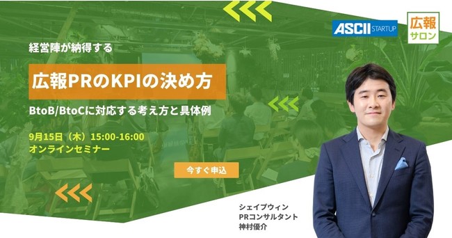 広報担当者向けの学習コンテンツと相談プラットフォーム『広報サロン』を展開するシェイプウィン株式会社(東京都渋谷区)は、中堅企業とスタートアップ向けに『経営陣が納得する広報KPIの決め方』をテーマとした広報PRセミナーを9月15日(木)に開催します