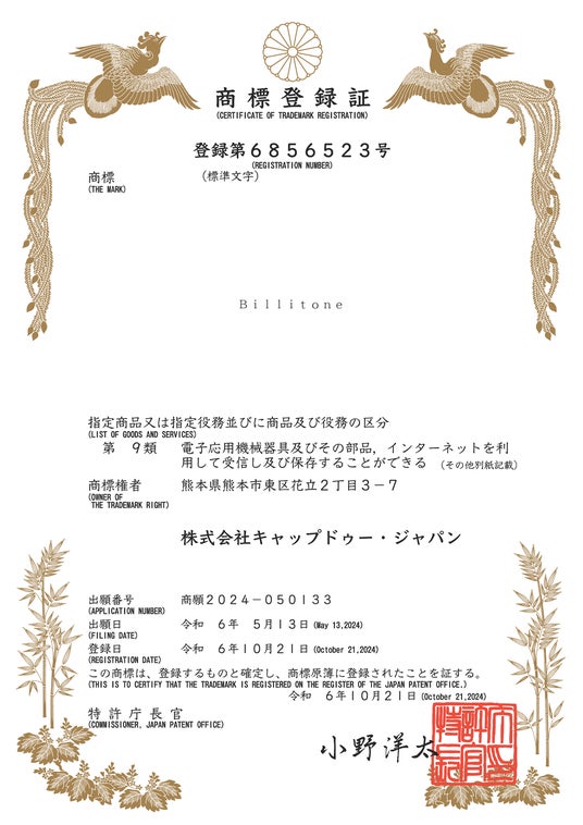 また、本プラグイン「Billitone(ビリトーン)」の商標登録も完了したことを、併せてお知らせいたします。