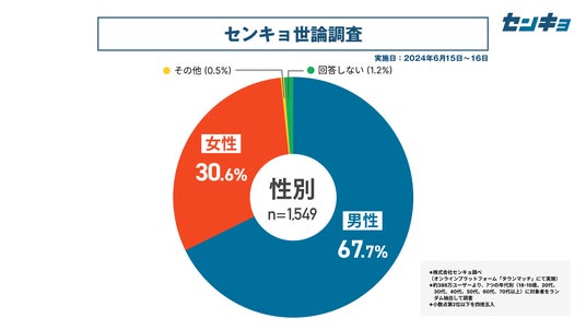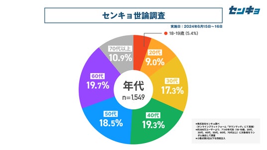 【調査結果について】 調査は、今月15日に、ご自身のプロフィールを回答いただた約360万人の方々の中から、年代別(18-19歳、20代、30代、40代、50代、60代、70代以上の7セグメント)にランダムで対象者を抽出してアンケートをお送りし、16日までに1549名から回答をいただきました。