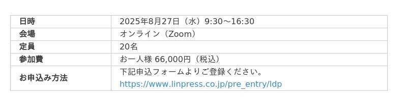 株式会社リンプレス(本社:東京都港区、代表取締役社長:三宮壮、以下、リンプレス)は、このたび事業部門やDX専門部署のDX推進担当者を対象とした育成プログラム『LDP(Leadership Development Program for DX)』の提供を開始いたしました。