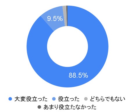 「大変役立った」(88.5%)、「役立った」(9.5%)という非常に高い評価をいただきました