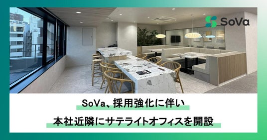 テクノロジーと専門家を掛け合わせた新しい形の会計事務所「SoVa」を運営する株式会社SoVa(本社:東京都千代田区、代表取締役:山本健太郎、以下「当社」)は、組織拡大および採用強化に伴い、本社から徒歩3分の場所にサテライトオフィスを開設したことをお知らせいたします。