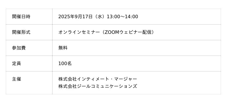 株式会社ジールコミュニケーションズ2025年9月17日(水)13:00~14:00 ZOOMオンラインセミナー