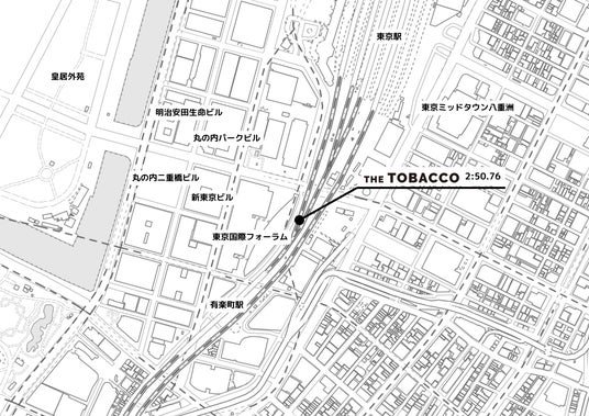 東京駅から皇居にかけて丸の内ビルディング、新丸の内ビルディング、丸の内パークビルディング、明治安田生命ビル、新東京ビル、丸の内二重橋ビルをはじめとした高層ビルが立ち並び、オフィス街として開発が進む丸の内エリア。東京駅から有楽町駅を結ぶ路線のガード下には飲食店が軒を連ね、東京国際フォーラムの目の前の一画に位置する「THE TOBACCO 2:50.76」は、丸の内に訪れた多くのビジネスパーソンにご利用いただいております。