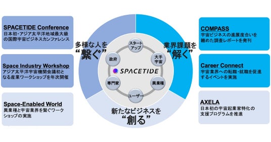 一般社団法人SPACETIDE(本社:東京都港区、代表:石田真康、以下「SPACETIDE」)は、2015年から「日本および世界の新たな宇宙産業の発展」をビジョンに掲げ、産業横断的な取り組みを通じて宇宙ビジネス全体の底上げを図り、新たな宇宙ビジネスの道筋を創り出すために活動している団体です。2015年から毎年、日本発の国際宇宙ビジネスカンファレンス「SPACETIDE」を主催しています。