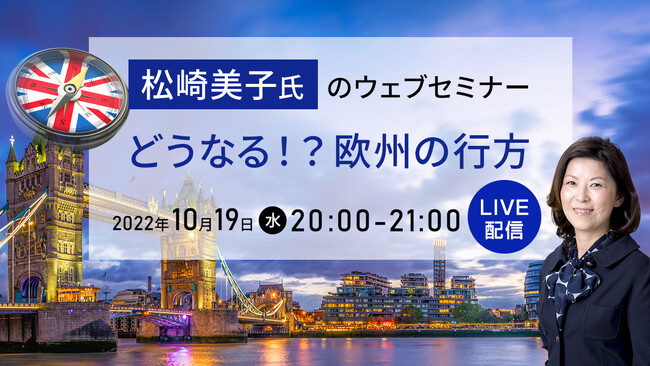 セントラル短資FX株式会社(本社:東京都中央区、代表取締役社長:松田 邦夫)は、2022年10月19日(水)20:00-21:00に「どうなる!?欧州の行方」松崎美子氏の無料ウェブセミナーを開催します。