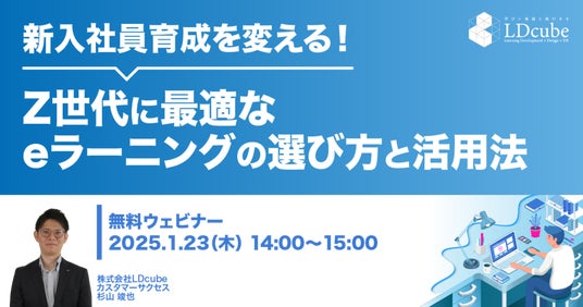 研修のスタイルにとらわれない企業向け人材育成サービスを提供する株式会社LDcube(本社:東京都千代田区、代表取締役社長:新井澄人、以下「当社」)は、2025年度の新入社員の入社が近づいてきていることを受け、「新入社員育成を変える!Z世代に最適なeラーニングの選び方と活用法」無料ウェビナーを開催いたしますので、お知らせいたします。