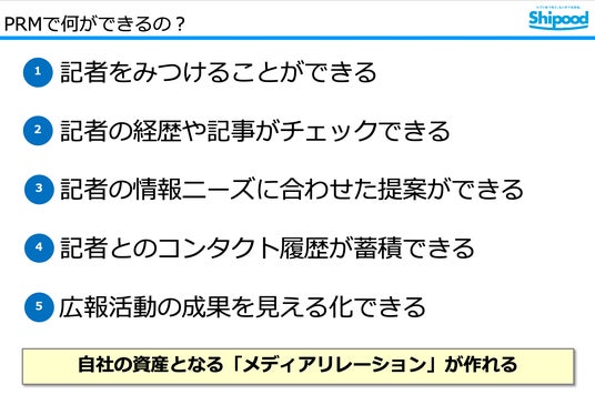 PRMが浸透する米国では、広報・PRやマーケティング、事業推進、営業などのチームがPRMを活用し、メディアとの関係性構築を戦略的に実行する企業が増えています。主要ツールとしてPRM大手の米国Mack Ruck社が急成長する中、国内では当社が今年3月、国内初となるPRMプラットフォームを提供開始しました。