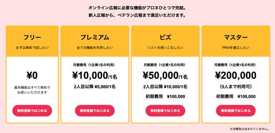 無料のフリープランと、オンライン広報に必要な有料の各種プランがあります。