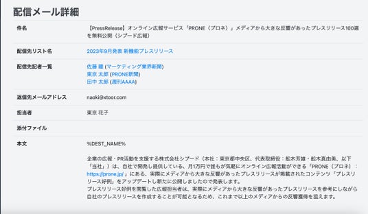 当社が提供するオンライン広報サービスPRONE(プロネ: