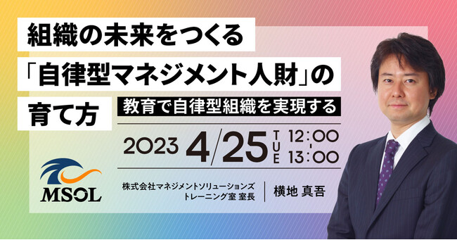 株式会社マネジメントソリューションズ(所在地:東京都港区、代表者:高橋信也)は、人財育成に関心のある方を対象に、自律型組織を実現する、「自律型マネジメント人財の育成」についてのウェビナーを、2023年4月25日(火)にオンラインにて参加費無料で開催します。
