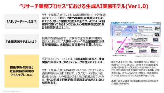 プライム上場企業の企業様向けに「AIリサーチャーの企業実装モデル(Ver1.0)」を発表株式会社一矢(代表取締役:福田大記、以下 ICHINOYA)はこの度、部門業務における「インテリジェンス体制」へのAI組み込みが発展していくビジョンを描いた「AIリサーチャーの企業実装モデル(Ver1.0)」を発表しました。