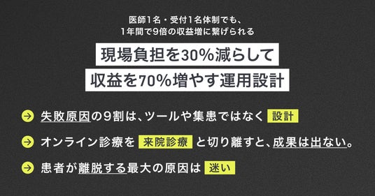 - 1日1時間のオンライン診療で9倍の収益増に繋げる「設計」とは