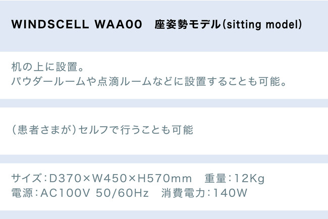 sittingとsleepingの2つのモデル 新モデルは同時施術もOK機器の前に20分間いるだけで効果を得られるという「ウィンセル」の特性を生かすべく最初に開発された座姿勢モデル(sitting model)は、美容皮膚科や婦人科のクリニックのパウダールームなどにも配置できるようなコンパクト設計が好評でしたが、一方で、ほかの施術の前後や同時に「ウィンセル導入」が行える点から、ベッドで寝たまま施術を行えないかという声が多く寄せられました。そこで、新たに寝姿勢モデル(sleeping model)の開発に着手。このたびの発売となりました。