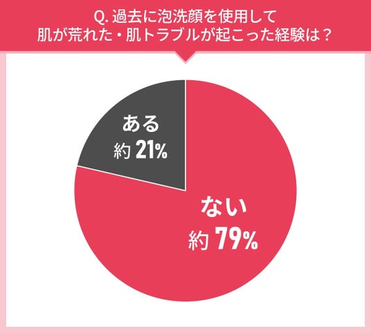 約79%の人が肌トラブルの経験はないと回答している一方で、約21%の人があると回答しました。少なからず合わない泡洗顔料を使うと肌トラブルが起こる場合があるということですね。