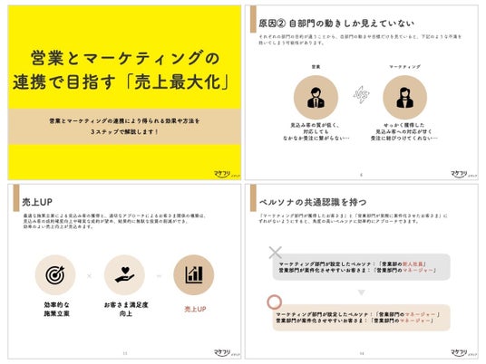 マーケティング・営業の実行方法がわかるメディア「マケフリ」を運営するカイロスマーケティング株式会社(本社:東京都渋谷区、代表取締役:佐宗 大介、以下「当社」)は、2024年12月11日(水)にeBook「営業とマーケティングの連携で目指す『売上最大化』」を公開しました。