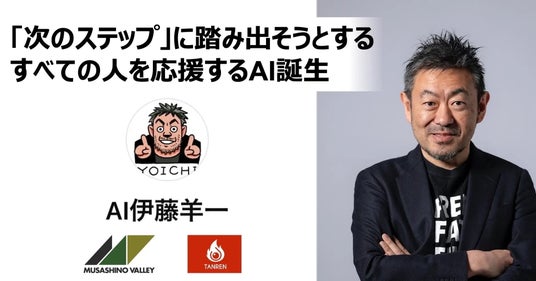 2024年10月31日、TANREN株式会社(本社:東京都千代田区、代表取締役 CEO:佐藤勝彦、以下:TANREN)は、株式会社MVP(本社:東京都三鷹市、代表取締役 MF:伊藤羊一、以下:MVP)と共同で、アントレプレナーシップを支援するGPTs機能を活用し「AI 伊藤羊一」をリリースしました。著書累計93万部を誇る伊藤氏のメソッドと実践知が詰まった本GPTsは、まず「Musashino Valley」の会員向けに提供され、次のステップを踏み出そうとするすべての人を強力に支援します。