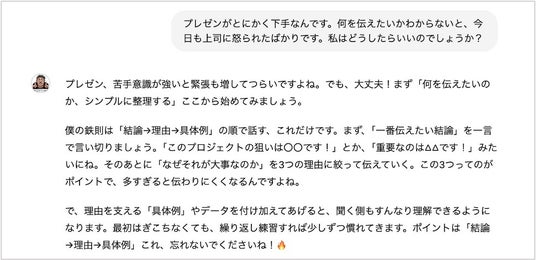 「1分で話せ」著者・伊藤羊一氏の実践的メソッドがChatGPTのカスタマイズ機能GPTsを活用し再現。行動を後押しする“熱血サポーター”を実現しました。