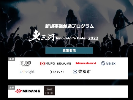 武蔵精密工業株式会社(本社:愛知県豊橋市、代表取締役社長:大塚浩史、以下ムサシ)が運営するMUSASHi Innovation Lab CLUE(住所:愛知県豊橋市駅前大通一丁目135番地 ココラアベニュー3F、2018年12月設立)は2022年11月21日より、約5カ月間のインキュベーションプログラム「東三河 Innovator’s Gate 2022」をスタートしました。