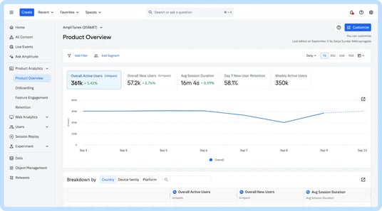 初期設定不要のウェブ/プロダクト・アナリティクス:これまで自社のデータを理解するには、ダッシュボードやチャートを構築する必要がありました。グロース、マーケティング、プロダクトのそれぞれのチームは今後、Amplitudeを利用することで、リアルタイムのインサイトを直ちに浮き彫りにできます。ユーザーは、こうしたインサイトの活用により、構築作業を一切行うことなく、キャンペーンのパフォーマンス、コンバージョン、リテンション、機能エンゲージメントなどの要素を理解できます。