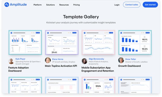 Timo Dechau氏など、製品/グロース分野のリーダーが構築したテンプレートを活用することで、測定対象やチャートの構築方法をゼロから考えるのに長時間を費やす必要がなくなります。これらのテンプレートは、リテンション、プロダクトレッドグロース(PLG)、キャンペーンパフォーマンスなど、業界別・役職別の最も一般的なユースケースに対応します。
