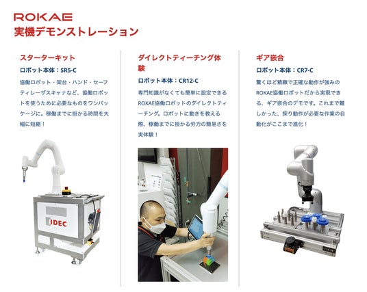 また、IDECグループの強みである安全関連機器や安全システムを軸に、各種メーカー(ROKAE、FANUC、KUKA、JAKA、安川電機、三菱電機、Universal Robot、ABB等)の協働ロボットや、ビジョンセンサ、AI、自律走行搬送ロボット(AMR)などを組み合わせた協働ロボットシステム構築支援にも注力。2022年には愛知県一宮市の本社内に新たな協調安全ロボットテクニカルセンターを開設しています。