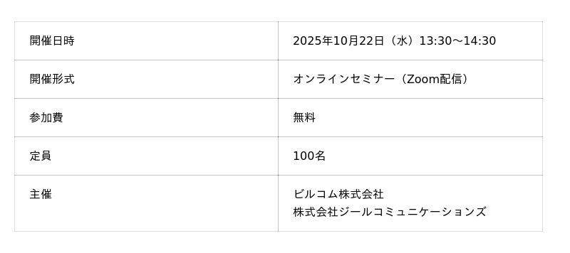 2025年10月22日(水)13:30~14:30 Zoomオンラインセミナー