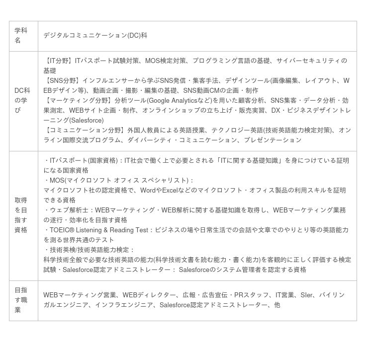 単にデジタルスキルを身につけるだけではなく、コミュニケーションのツールとしてデジタルをどう生かしていくかを実践的に学べることが新学科の大きな特徴となっています。DC科での学びはみなさんに大きな可能性を与えると確信しております。
