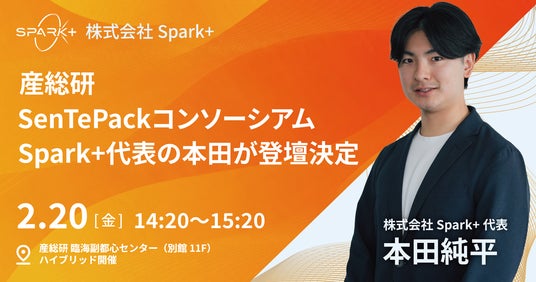 “AIで産業課題解決に挑む”株式会社SparkPlus(スパークプラス、本社:東京都文京区、代表取締役:本田純平、以下「Spark+」)は、国立研究開発法人産業技術総合研究所(以下、産総研)が運営する「センシング技術・次世代パッケージング(SenTePack)コンソーシアム」において、2026年2月20日(金)に開催される研究会への登壇が決定したことをお知らせいたします。