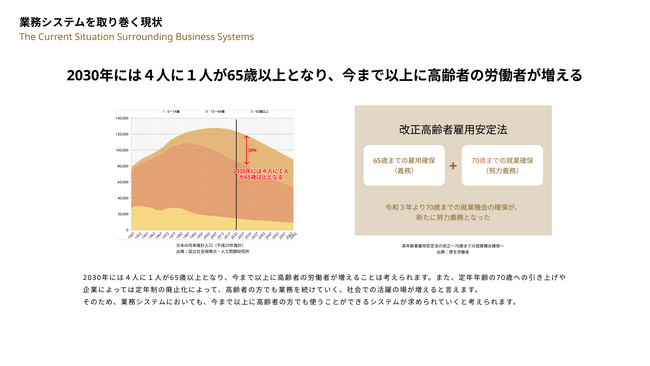 特定の状況、特定の人が使う業務システムは、より多様性に考慮した使いやすさが求めらるように近年なってきています。SaaS(Software as a Service)やASP(Application Service Provider)のように、インターネットを介して多種多様な人々が使うものが増えてきています。また、いままでデジタル化されていなかった分野、業界においてもDX化が進められ、デジタルリテラシーに関わらず、システムを使うことができる必要も出てきています。