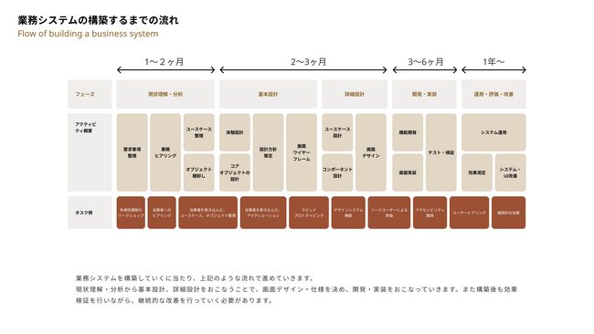 業務システムを構築していくに当たり、上記のような流れで進めていきます。