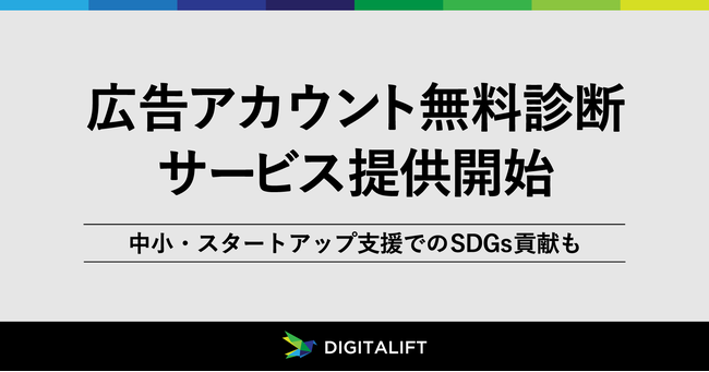 また、デジタリフトではSDGsに積極的に取り組んでおり、「高水準のデジタルマーケティングテクノロジーを誰にでも」という理想を掲げ、これまでにも低予算向けの広告運用プランの提供をはじめとする、中小企業・スタートアップ支援を行ってきました。今回の「広告アカウント無料診断サービス」についても、事業立ち上げ期など大きな予算がかけられない時期にも、診断結果の活用で少しでも事業成長に貢献できたらとの思いもあります。