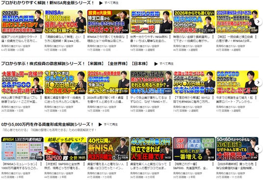 投稿動画は930本以上(2026年2月時点)。総再生回数は9,600万回を超え、多くの視聴者の学びと行動につながるチャンネルとして成長を続けてきました。特に、40~60代のいわゆる「ミドルシニア世代」からの支持が厚く、「年金はいつ受け取るべき?」「老後資金はいくら貯めるべき?」など、実践的なテーマの解説が高く評価されています。