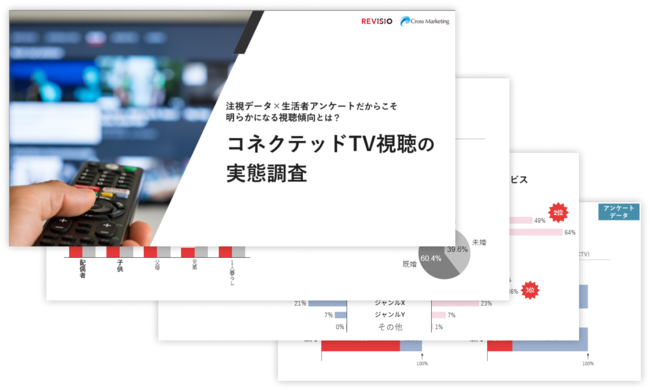 ご家庭に人体認識技術を搭載した機器を設置し、テレビスクリーンへの「注視」を測るREVISIO株式会社(旧TVISION INSIGHTS、本社:東京都千代田区、代表取締役社長 郡谷康士、以下REVISIO)は、株式会社クロス・マーケティング(本社:東京都新宿区、代表取締役社兼CEO 五十嵐幹、以下クロス・マーケティング)と、コネクテッドTV(以下、CTV)の視聴傾向について、研究結果をまとめた資料「コネクテッドTV白書2023」を共同で発表いたします。