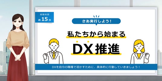 「DX人材育成講座」は、PIP-Makerを活用しており、新人研修はもちろん、ITスキルのない現場社員から実践的なDXを求めている現場責任者までを対象としたオンライン教育プログラムです。DXに対する基礎的知識の習得を行う「1.DX基礎知識編」に加え、実際の行動を促す「2.DX行動編」の2部構成となっており、”現場主導のDX”を提供します。